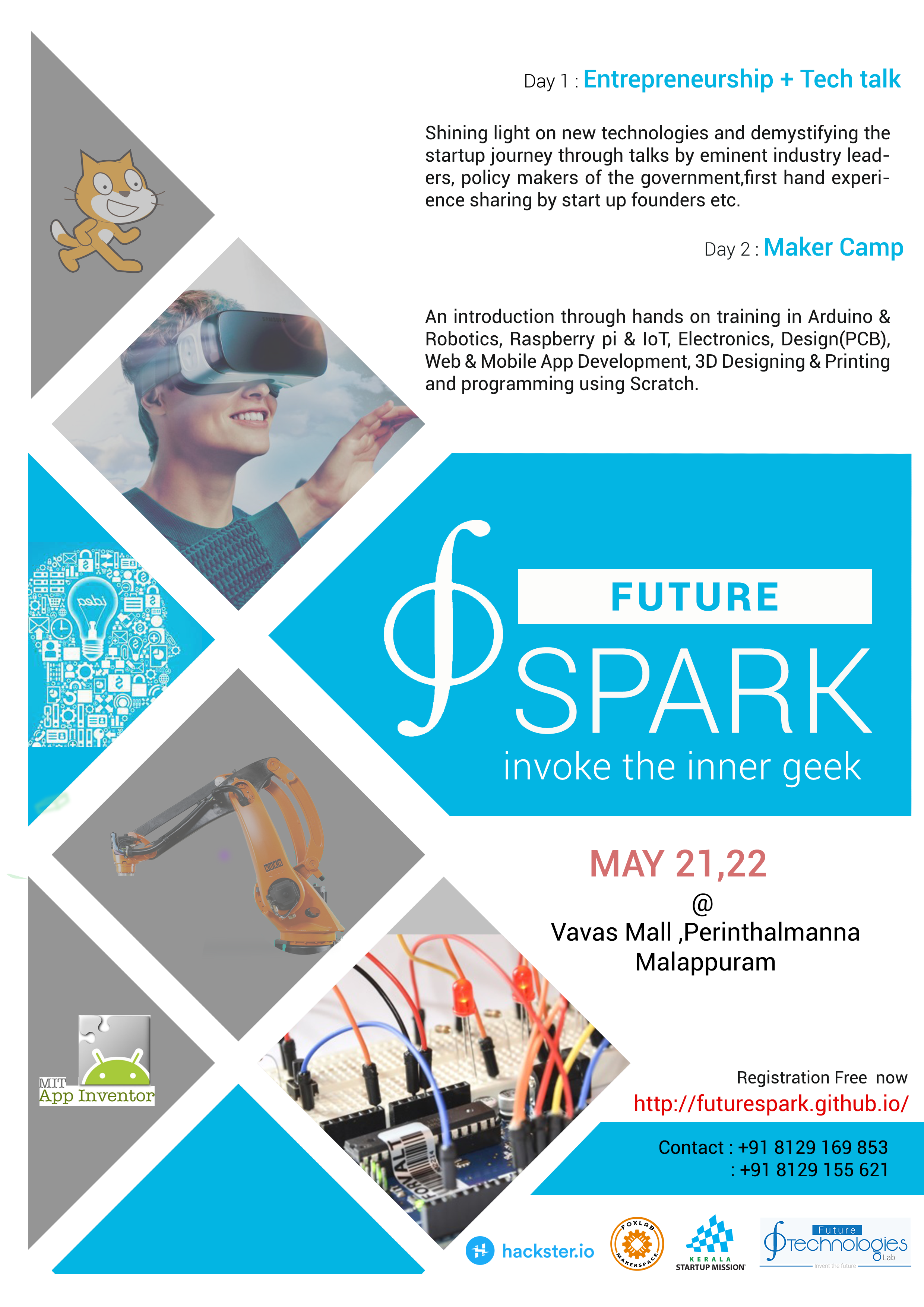 Developing an interest, defining and distilling out the paths to pursue, is a continuum rather than a one step event. As an introduction, we will be learning about Arduino & Robotics, Raspberry pi & IoT, Electronics, Design(PCB), Web & Mobile App Development, 3D Designing & Printing and programming using Scratch.